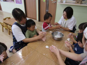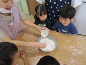 今回はきりん組さんが『お月見団子』作りに挑戦しました😊