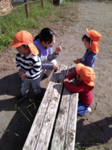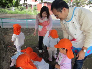 子どもたちはお母さん先生とお父さん先生に興味津々・・・