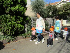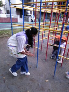 公園では一緒にどんぐりや葉っぱを拾ったり
