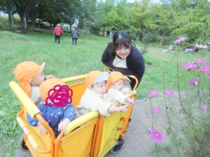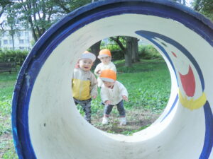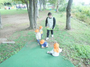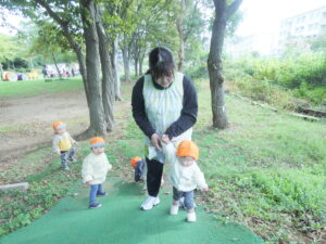 小さな坂道を上ったり、滑ったり、転がったり・・