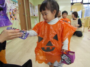 でもお菓子をもらう時には上手に「トリックオアトリート!」と言えていましたよ♪