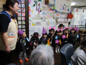 おじいちゃんおばあちゃんの前で披露する「どんぐりころころ」を今日まで毎日みんなの前で練習してきました