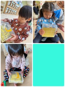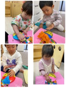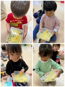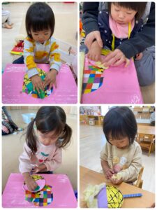 絵の具を付けたビー玉をコロコロして鬼のパンツを作ります🐅