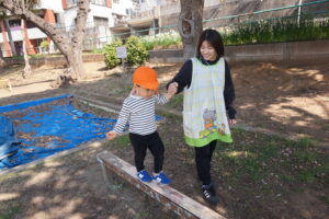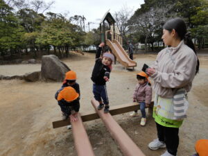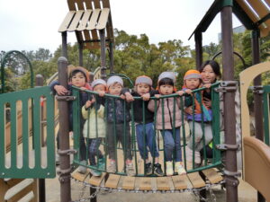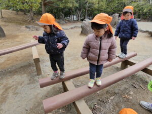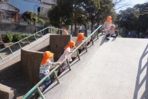さすが2歳児クラスのみんな。どんな遊具もチャレンジです!